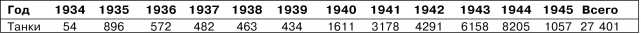 Выпуск танков и самоходных орудий достиг своего максимума в конце 1944 года — почти 1800 машин в месяц. Поскольку производство танков в технологическом отношении требовало значительно большего времени и усилий, чем самоходных орудий, то в 1944 году доля производства танков снизилась. Наивысшего уровня производство танков достигло в августе 1944 года и составило 865 машин в месяц, а выпуск самоходных орудий всех типов перевалил к концу 1944 года за 1000 единиц.
