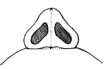 14. Выступ основания носа — от наиболее выдающейся вперед точки кончика носа до точки, лежащей в углу между носовой перегородкой и верхней губой (см. рис. 7).