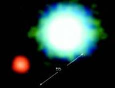 Белый объект справа - это «коричневый» (инфракрасный) карлик 2М1207. По-видимому, у этой карликовой звезды есть планета (слева на снимке). Масса планеты - примерно пять масс Юпитера; она находится на расстоянии 55 а.е. - в 10 раз дальше от звезды, чем Юпитер от Солнца. (Снимок получен в Южно-Европейской обсерватории Паранал (Чили) с помощью так называемой адаптивной оптики 8-метрового телескопа.)