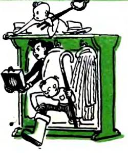 И вдруг все механизмы, взбунтовавшись, стали вылезать из своих мест. Вася Дотошкии увидел ребят со двора и старшую сестру Белоручкина. (См. стр. 67.)