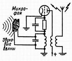 Однако такой микрофон страдал бы недостаточной верностью воспроизведения звуков. Поэтому используют схемы, в которых внутренняя емкость между двумя электродами электронной лампы изменяется под воздействием напряжений НЧ, приложенных к ее управляющей сетке. Схему этого устройства я рисовать не буду.