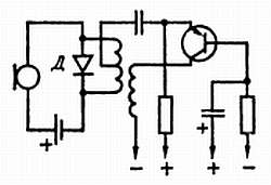 Рис. 167. Диод Д под воздействием микрофонных сигналов изменяет частоту колебательного контура.