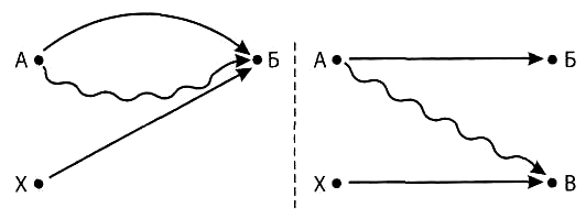 Такие схемы сводятся к однозвенным: если считать Б изменяемым изделием или перенести на Б основное свойство (или состояние) А.