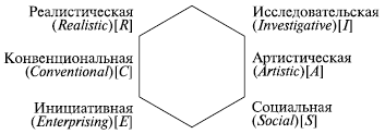 Большинство людей имеет более одной ориентации, и Дж. Голланд полагает, что чем более похожи или совместимы эти ориентации, тем меньше внутренний конфликт и легче принимать решение о выборе карьеры. Для иллюстрации этого он разместил каждый вид ориентации в одном из углов правильного шестиугольника (рис. 5.23).[172]