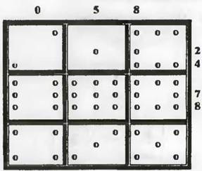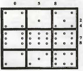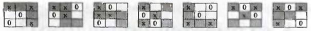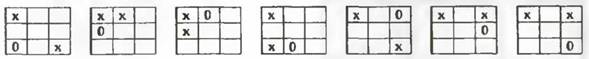 Ходы первого игрока обозначим «X», второго – «О». И понятно, что тот, кто первым «соберет» нужную строку, колонку или диагональ магического квадрата, тот выиграет. Возможны следующие варианты ответного хода второго игрока и второго хода первого игрока (они приведены в табличках строки А).