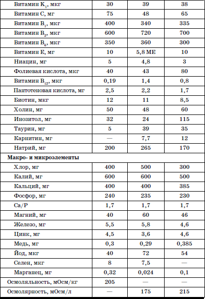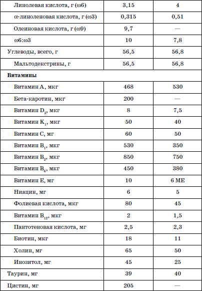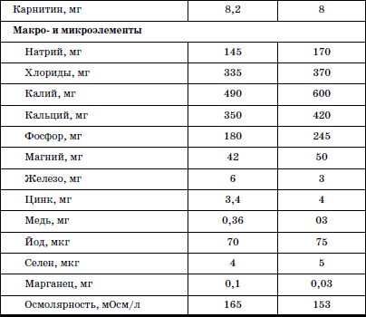 Эти продукты являются заменителями грудного молока, отвечающими современным требованиям, и содержат все необходимые нутриенты. Например, Мамекс безлактозный (см. табл. 46) содержит оптимальное количество белка (1,46 г/ /100 мл), адаптированный состав и количество жиров (?6:?З = 1:10) и углеводов (мальтодекстрин), обогащен фосфолипидами и нуклеотидами, L-карнитином и таурином, оптимален по осмолярности (165 мОсм/л). Подобные смеси могут в течение длительного времени служить основой питания детей с непереносимостью лактозы.