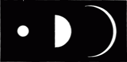 Причина одна и та же. Ее указал Галилей. И Венера и Луна, подобно Земле, — большие темные шары, освещаемые Солнцем. Солнце может осветить сразу только одну половину шара — ту, которая обращена к нему. А та часть шара, которая не освещена Солнцем, — темная и нам не видна. Когда вся освещенная половина Луны или Венеры обращена к нам, мы видим полный светлый круг, а когда мы смотрим на освещенное полушарие планеты сбоку, она представляется нам полукругом или серпом.