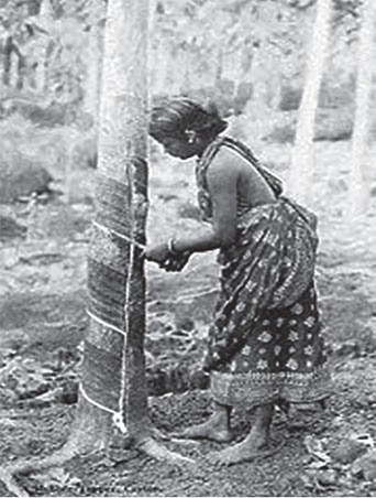 Рис. 2. Сбор сока (латекса) в настоящее время