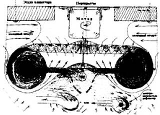 Наконец удалось построить машину, которая органически производит холод и тепло (рис. 27). Тепло- или холодопроизводящие динамо действуют без огня, при помощи холодного сгорания. Это и обогреватель, и холодильная установка одновременно. С помощью органического вакуума он поднимает газ или воду на любую высоту, дематериализует их и ректифицирует их так, что можно производить воду или воздух любого вида. Главный критерий: правильные соотношения компонентов. Изучайте катализаторы, которые выделяют кислород из воды. Для экспериментов используйте углекислый калий, цинк или соду. Чтобы рассеять избыточное тепло, нужно к водному раствору добавить алюминий и кварц. Отношение 1:1 не подходит, потому что получающаяся температура слишком высока. Я догадываюсь, что соотношение — 2:3, при этом должны преобладать С-субстанции. Число оборотов в минуту — 4000 и 9000. Основа всего — планетарное движение и силы всасывания и давления по противоположным сторонам от катализаторов. В зависимости от скорости вращения, возрастание давления или веса может быть до 350 000 раз. Прибор также может использоваться для производства дешевого искусственного топлива.
