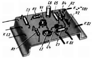 Детали размешай вверху панели, а соединения между ними делай снизу и обязательно пропаяй. Колебательный контур с катушкой связи L2 подключишь ко входу усилителя после того, как наладишь его.