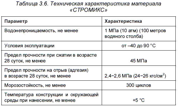 Техническая характеристика материала «СТРОМИКС-защита от сырости» представлена в табл. 3.6.