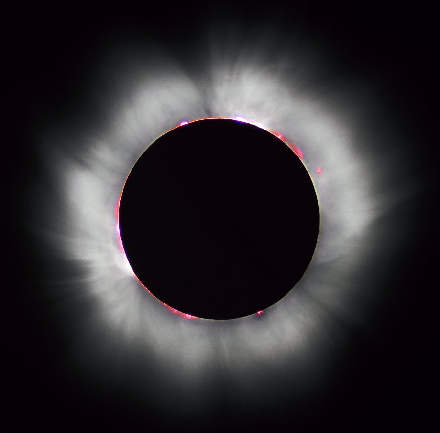 Значительный прогресс был достигнут к концу XIX столетия с изобретением фотографии и спектроскопии. Спектры, полученные во время затмения 1868 г., выявили в протуберанцах яркие эмиссионные линии. С тех пор протуберанцы правильно объясняют как светящиеся облака газа, лежащие высоко над поверхностью Солнца. Между прочим, именно во время этого затмения была открыта яркая спектральная линия, которую нельзя было связать с излучением какого-либо из известных тогда атомов, вследствие чего ее приписали новому солнечному элементу — гелию.