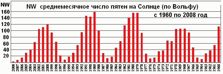 Наблюдения солнечных пятен, используемые для научных исследований, астрономы проводят в течение почти трех последних столетий. Некоторые элементарные сведения о пятнах можно отыскать и в более отдаленном прошлом. Галилей проводил свои наблюдения в 1610—1611 гг., и с этого периода регистрация пятен то проводилась, то прекращалась, то возобновлялась вновь. К 1843 г. Г.Швабе из Дессау собрал достаточно много данных для того, чтобы подтвердить долгое время существовавшее предположение о регулярных флуктуациях числа солнечных пятен. Швабе показал, что число пятен на диске меняется циклически, достигая максимума примерно через каждые одиннадцать лет. Следующим, кто внес существенный вклад в исследование солнечных пятен, был Р.Вольф, который в середине XIX столетия собрал все, какие только мог, данные о пятнах и привел их к удобному виду. Он установил, что средний период цикла равен 11,1 года.