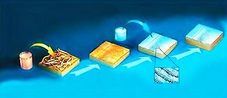 Если в раствор, содержащий, например, ионы золота, поместить фаг с высокой избирательностью к этому металлу, то он вскоре покроет себя пленкой драгоценного металла и превратится в проволочку длиной 1 мкм, пригодную для соединения элементов микросхемы. Более того, такой вирус, соединяясь с себе подобными, образует сеть золотых микропроводников.