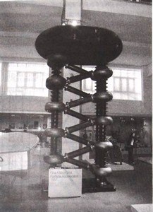 Рис. 18.3. В первых ускорителях частиц умножитель напряжения Кокрофта-Уолтона создавал необходимый перепад напряжения. Здесь показано такое устройство, созданное в 1937 году фирмой «Филипс» и сейчас хранящееся в Национальном музее науки в Лондоне.