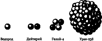 Рис. 18.2. Ядра состоят из протонов (серые шарики) и нейтронов (темные шарики). Ядро урана состоит из 92 протонов и 146 нейтронов. Это одно из самых тяжелых среди известных атомных ядер.