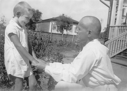 М. А. Шолохов со своим сыном Сашей. Станица Вёшенская. 1935 г.