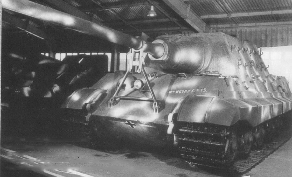 «Ягдтигр», захваченный советской армией 6 мая 1945 г. в исходной окраске. В настоящее время находится в танковой коллекции музея БТВТ в г. Кубинка Московской обл.