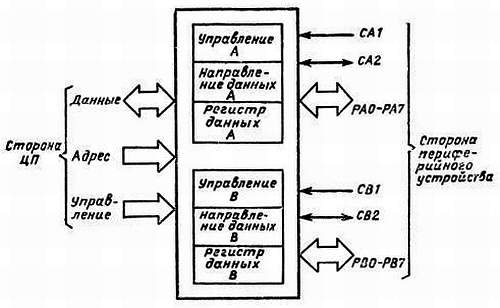 СА1—СА2 — линии квитирования для порта А; СА1 — это вход прерывания, а СА2 можно использовать и как вход прерывания, и как выход управления периферийным устройством;