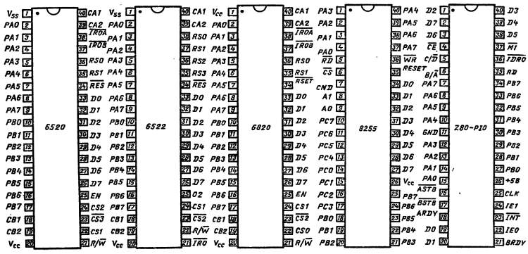 Рис. 7.7. Разводка контактов распространенных программируемых микросхем параллельного ввода-вывода.