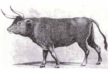 Тур. Фотокопия со старинной польской картины. Английский зоолог Смит нашел ее в антикварной лавке Аугсбурга. Лучшее из дошедших до нас изображений тура.