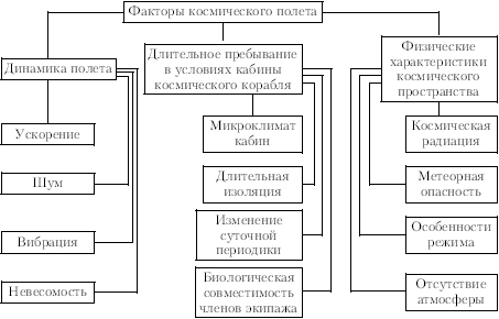 В космическом полете на организм человека могут влиять три основные группы факторов (рис. 3.8).