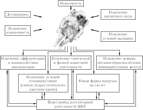 Рис. 3.9. Влияние космического полета на организм (по: Н. А. Агаджанян и др., 1994)