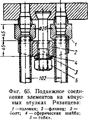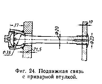 Подвижные связи применяются следующих конструкций: без втулок; с наружными втулками различной конструкции; с втулками, утопленными в лист кожуха. Втулки устанавливают на резьбе или приваривают электросваркой (фиг. 24).