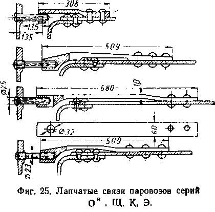 лирная (фиг. 27). Шарниры первых двух систем, покрываясь накипью, затрудняют игру и работают как обычные жесткие связи. Болты этих систем с 1932 г. на паровозы не устанавливают.
