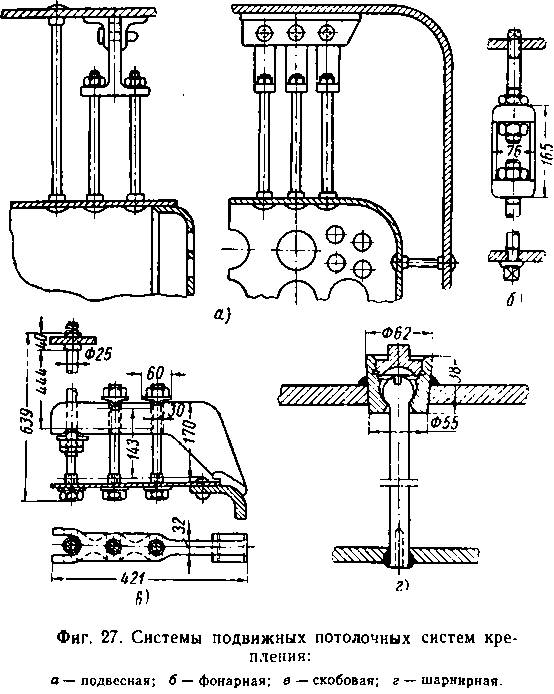 Из подвижных потолочных. систем крепления наибольшее распространение на наших паровозах до 1932 г. имели: подвесная, фонарная, скобовая и шар-
