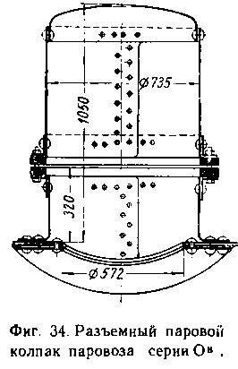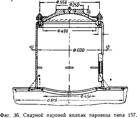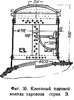 Паровые колпаки делаются разъемными в средней своей части (фиг. 34), клепанными (фиг. 35), сварными (.фиг. 36), с крышкой в верхней части или цельноштампованными.