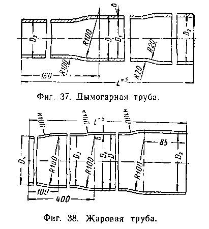 Дымогарные и жаровые трубы. Для лучшего использования тепла и отвода продуктов сгорания из топки паровоза в дымовую коробку и далее в атмосферу паровозный котел снабжен дымогарными и жаровыми трубами (фиг. 37, 38), которые проходят через всю