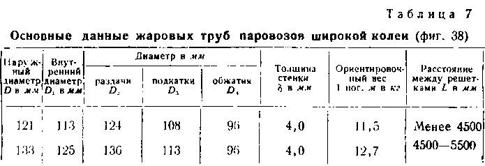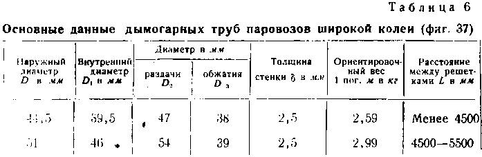 Стандартные формы и размеры дымогарных и жаровых труб паровозов широкой колеи приведены в табл. 6 и 7.