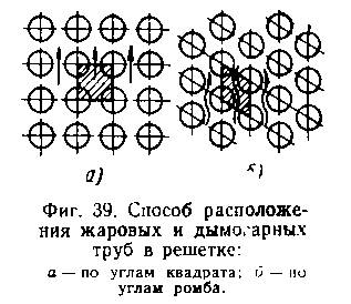 На современных паровозах дымогарные трубы располагаются по углам ромба, а жаровые — по углам квадрата (Э, СО, .157, 159, ПТ-4) или по углам ромба (ГР, ОП-2) (фиг. 39).