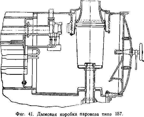 Некоторые паровозы узкой колеи (ПТ-4, ВП-1), отапливаемые дровами и торфом, снабжаются специальными дымовыми трубами, оборудованными турбинными искроудержательными приборами (фиг. 80).