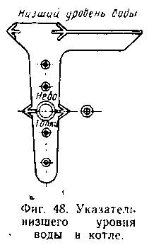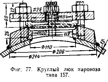 На верхней части кожуха топки для осмотра и промывки потолка топки устраиваются отверстия диаметром до 180 мм, закрывае-вые крышками тарельчатой формы (фиг. 77).