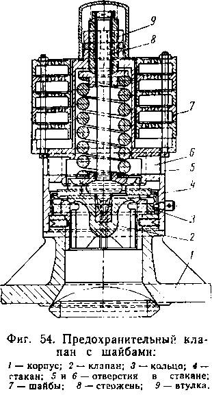 Большой клапан в верхней части имеет кольцевую притирку, которой он опирается на коническую поверхность головки, являющуюся седлом для клапана. Нижняя, уширенная часть клапана имеет вид поршня, которым он входит в разгрузочную камеру с небольшим зазором. В центре большого клапана помещается малый клапан 3. Когда регулятор закрыт, оба клапана прижаты к своим гнездам давлением пара в котле. При открытии регулятора сначала открывается (поднимается вверх) малый клапан 3 и пар через открывшееся отверстие проходит во внутреннюю часть головки, давит снизу на большой клапан 2 и разгружает его. Вследствие этого при