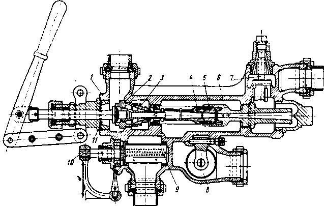 дальнейшем открытии регулятора большой клапан 2 легко приподнимается вверх и пар из котла поступает между ребрами клапана и головки в регуушторную трубу.