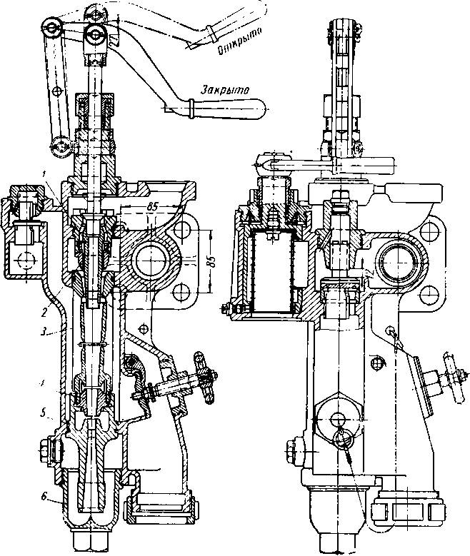 Открытие и закрытие регуляторных клапанов осуществляется при помощи специального привода, состоящего из системы тяг,