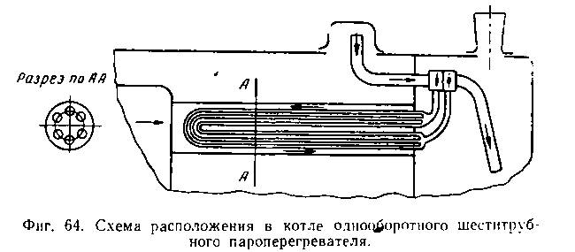 двухоборотным четырехтрубным пароперегревателем, каждый элемент которого состоит из четырех труб наружным диаметром 35 мм