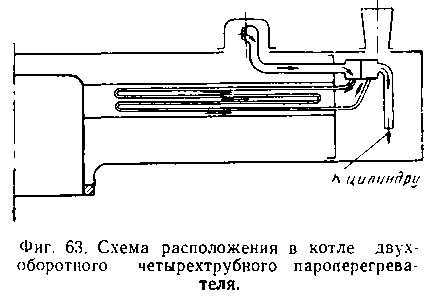На узкоколейных паровозах типов 157 и 159 установлены четырехоборотные пароперегреватели, каждый элемент которого расположен в двух соседних по вертикали жаровых трубах. На