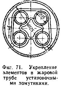 Для правильного расположения элементов пароперегревателя по оси жаровых труб и сохранения расстояния между трубками применяют специальные установочные хомутики (фиг. 71), устройство которых бывает разное.