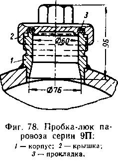 Пробка состоит из двух частей: корпуса U ввернутого или вваренного в стенку «отла, и крышки 2, навернутой на корпус. Уплотнение между корпусом и крышкой достигается прокладкой 3, изготовленной из паронита. Конструкций люков-пробок имеется несколько; все они отличаются друг от друга только размерами и способом крепления крышки.