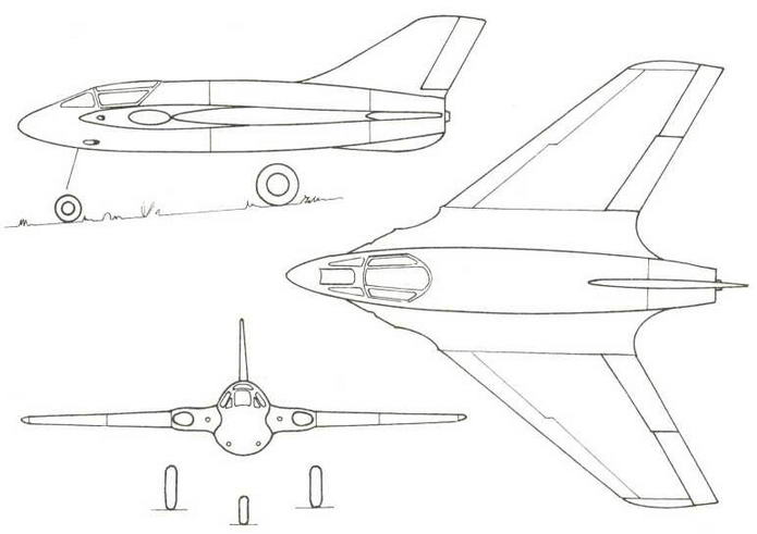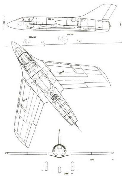 В разработку этого самолета конструкторское бюро вложило весь свой опыт, накопленный при проектировании предыдущих истребителей. После многих предварительных эскизов самолетов бесхвостой схемы возник наконец по-современному очень грациозный «нормальный самолет» с V-образным хвостовым оперением. До самого конца войны так и не был завершен спор о преимуществах и недостатках машин бесхвостой конструкции по сравнению с обычной.
