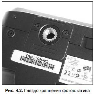 После съемки осмотрите его, если на него попала грязь, удалите ее с помощью теплой воды и чистой салфетки. При необходимости смазать шарниры или очистить приставшую грязь можно с помощью жидкой автомобильной смазки WD 40. Излишки смазки можно удалить чистой салфеткой. И, что важно, данная смазка вытесняет воду, защищая от коррозии. Старайтесь при первой же возможности очищать от песка и грязи любые резьбовые соединения, в том числе гнезда для крепления штатива (рис. 4.2). Так же как и фотоаппарат, большую часть съемочного времени храните штатив в чехле.