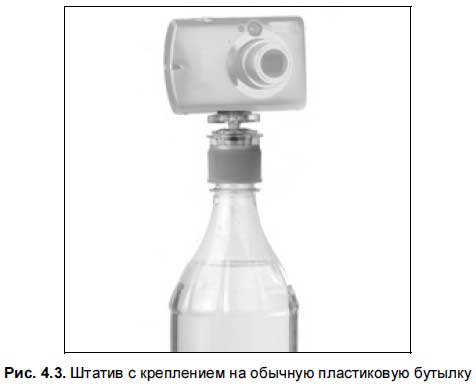 Такие штативы раньше делали самостоятельно, из чего придется, теперь его можно купить за 5 долларов в магазине (рис. 4.3). Такая маленькая и забавная штучка позволяет использовать в качестве штатива практически любую наполненную жидкостью бутылку.