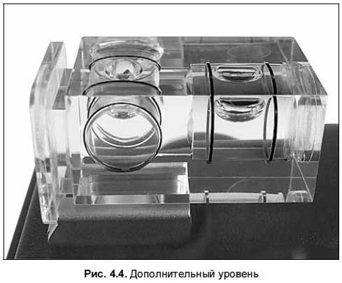 Часто штативные головки имеют пузырьковые уровни. Они необходимы, когда надо выровнять камеру точно по линии горизонта, и на глаз невозможно определить, параллельно земле стоит площадка штатива или нет. Также на SD-головках наносится градусная маркировка — для точного кадрирования при съемке панорам. Если на штативе нет встроенного уровня, можно купить дополнительный, устанавливаемый в гнездо вспышки (рис. 4.4).