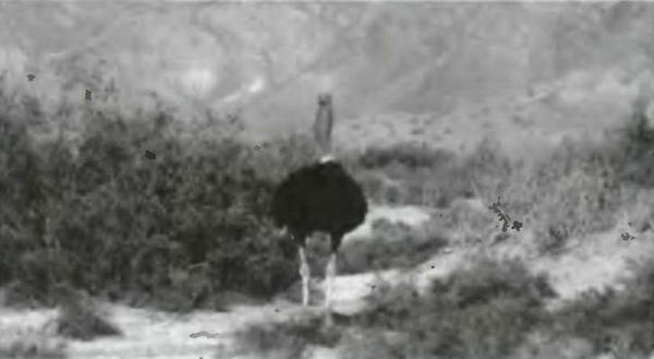 Однажды испортилась погода. Похолодало, дул сильный ветер, время от времени начинал капать дождь. Наш «боевой друг» весь день меланхолично лежал вдалеке пол кустом, и мы наконец свободно смогли делать все, что нам требовалось. Но к ощущению нормальной работы примешивалось странное чувство, будто чего-то не хватает. Израиль — историческая родина этой библейской птицы. Когда- то широко распространенные на Ближнем Востоке, страусы исчезли из этого региона почти 40 лет назад. На самый мелкий подвид — ближневосточного, или сирийского страуса — безжалостно охотились, и в конце концов полностью его истребили. В 1973 году из Эфиопии в питомник прибыли первые 18 птиц эритрейского (пустынного) подвида, и с тех пор страусы размножаются здесь постоянно. Сейчас невозможно представить себе «Хай Бар» без длинношеих и длинноногих созданий, придающих совершенно особый, африканский колорит пустынному ландшафту.