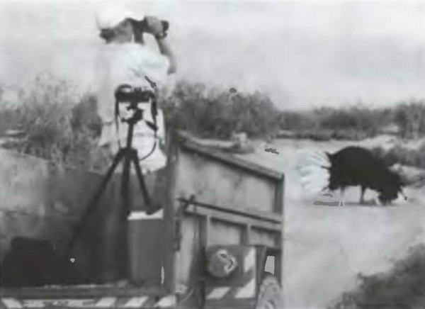 На место наблюдений привезли прицеп к трактору с высокими деревянными бортами, которые должны были уберечь нас от удара страусиной ноги. Собрав аппаратуру и вооружившись шваброй, еще до рассвета мы на автомобиле Давида подъехали к прицепу, благополучно пересели в него и стали ждать. Ожидание было недолгим: очень скоро вдали показался знакомый силуэт. Переходя от куста к кусту и искусно затаиваясь, к нам приближался Хозяин. Надо сказать, что не все страусы одинаково агрессивно реагируют на людей. Самки, не имеющие своих территорий, бродят по участкам самцов, проявляя лишь здоровое любопытство ко всему новому. Подойдя к тележке, они оглядывали нас, дергали за штормовку, пытались клевать штатив, но отогнать их не составляло большого труда. Ведь они тоже находились «в гостях» и, подобно нам. опасались хозяина территории. Действительно, завидев незваных визитеров, наш самец устремлялся к ним, постепенно переходя с шага на бег, самки ретировались, и вскоре, подымая пыль, кавалькада на хорошей скорости исчезала из виду. Так же хозяин территории реагировал и на бродячих самцов, не сумевших занять свой участок. Эти бомжи нам очень облегчали жизнь, ведь пока хозяин гонялся за ними, мы имели возможность вылезти из тележки.