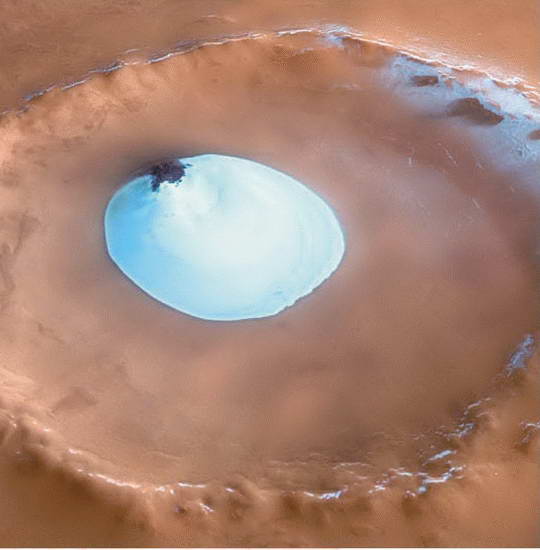 С точки зрения топографии Марс на сегодняшний день — одно из наиболее изученных тел Солнечной системы. Основная черта марсианской «географии» — так называемая дихотомия полушарий. Поверхность планеты состоит как бы из двух контрастных частей: южное полушарие покрывают древние высокогорья, а в северных широтах сосредоточены более молодые равнины. Разница высот между горными и равнинными областями достигает 6 км. Почему полушария Марса так сильно отличаются друг от друга, до сих пор неясно. Возможно, такое деление связано с давней катастрофой — падением на Марс крупного астероида.